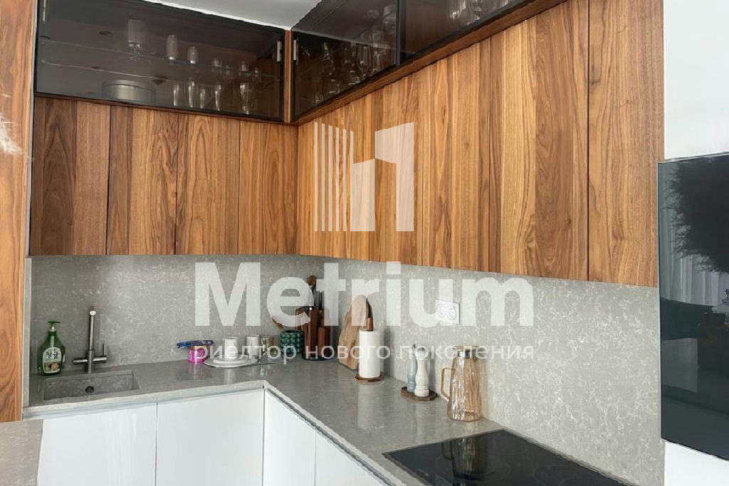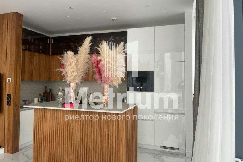 Выполнена отделка с использованием высококачественных натуральных материалов. Установлены деревянные декоративные панели. Кухня выполнена на заказ и укомплектована премиальной техникой. Апартаменты меблированы и готовы к проживанию.